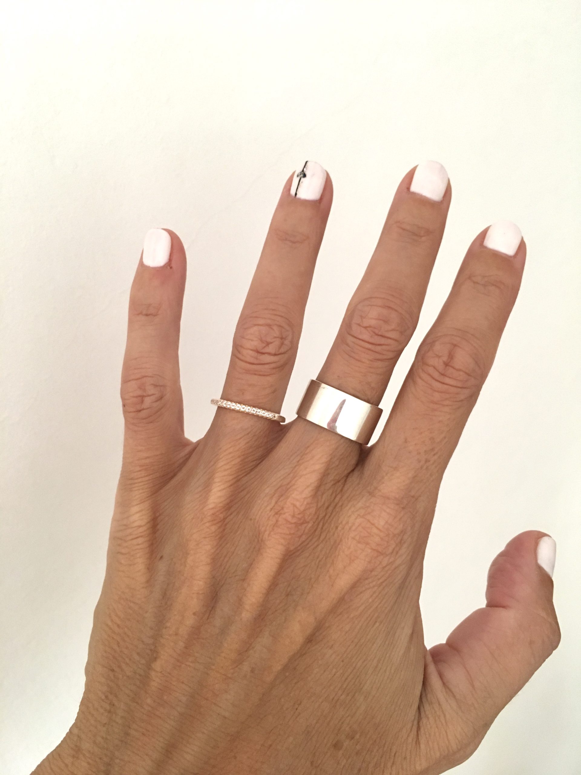 Anillo confeccionado en Plata 925, diseño tipo cinta, liso y minimalista, divino para llevar solo en la mano, acompañado con otro mas fino y tambien en el dedo pulgar.
