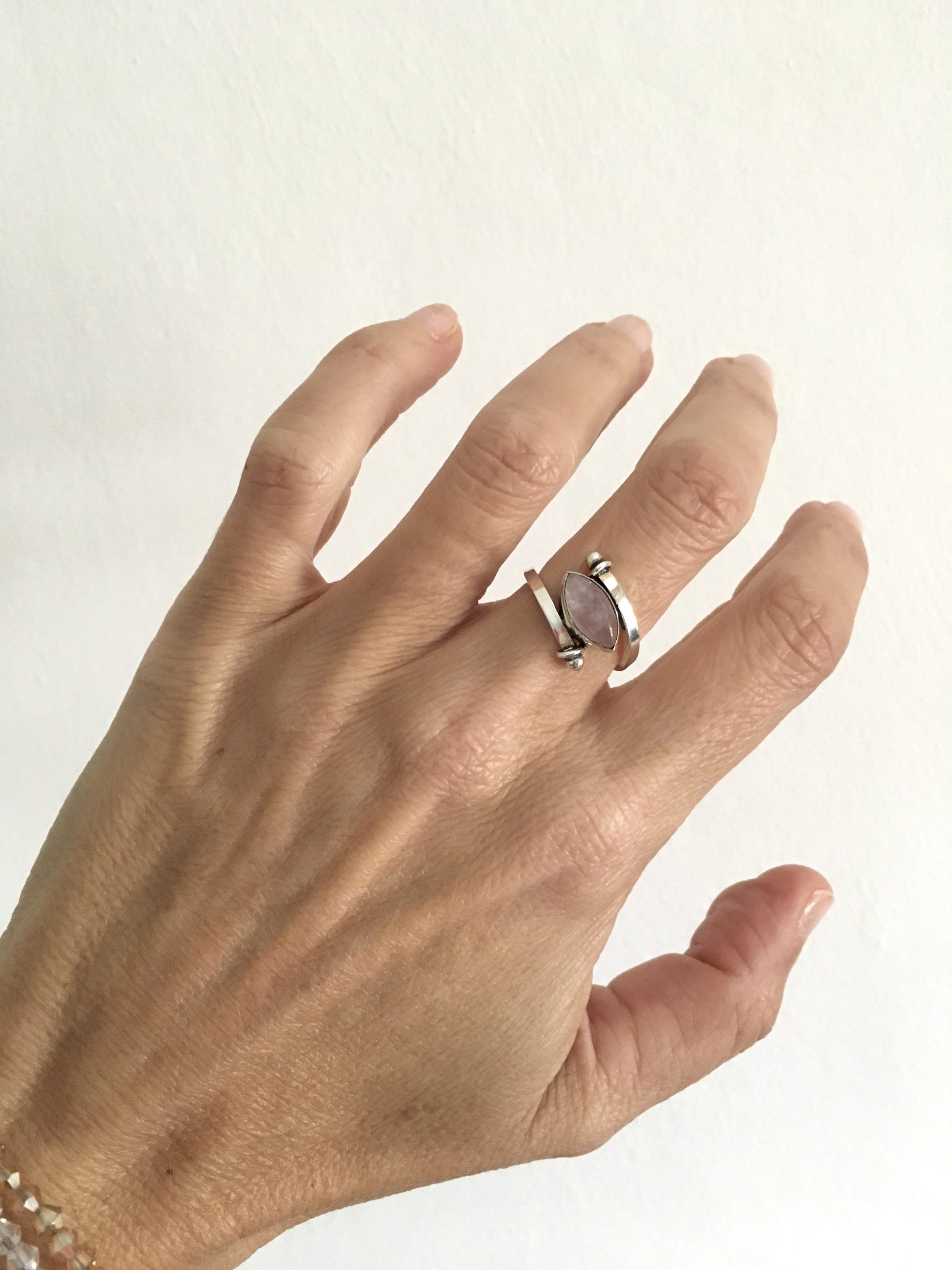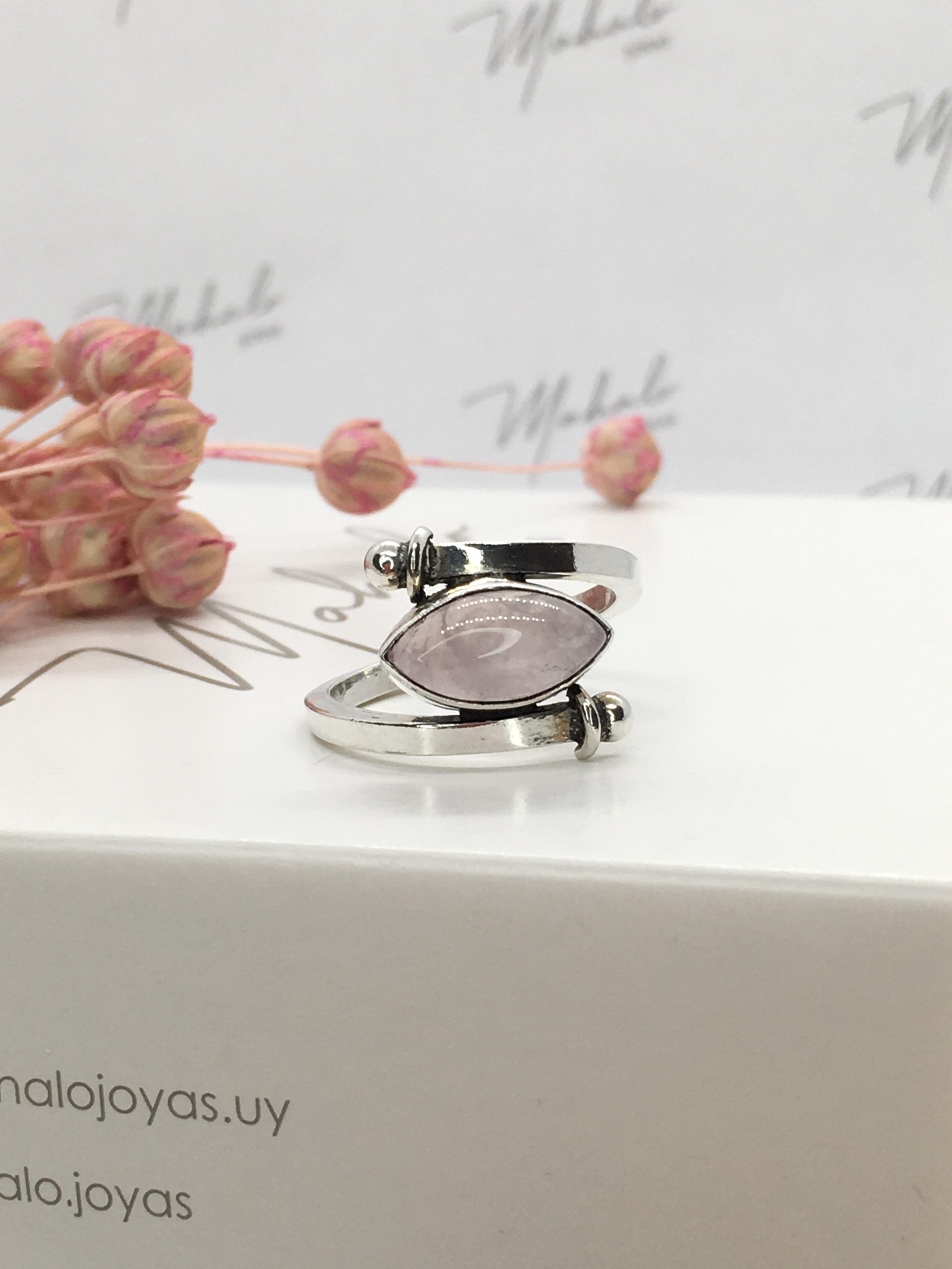 Anillo confeccionado en Plata 925 con piedra natural de cuarzo rosa. Su color permite que sea un anillo muy facil de combinar con otros colores, dando un toque de delicadeza y frescura a tu estilo.