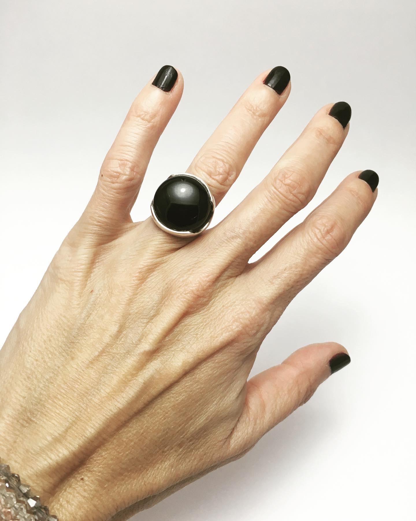 Anillo confeccionado en Plata con un cuerpo fuerte y firme con piedra ónix redonda.