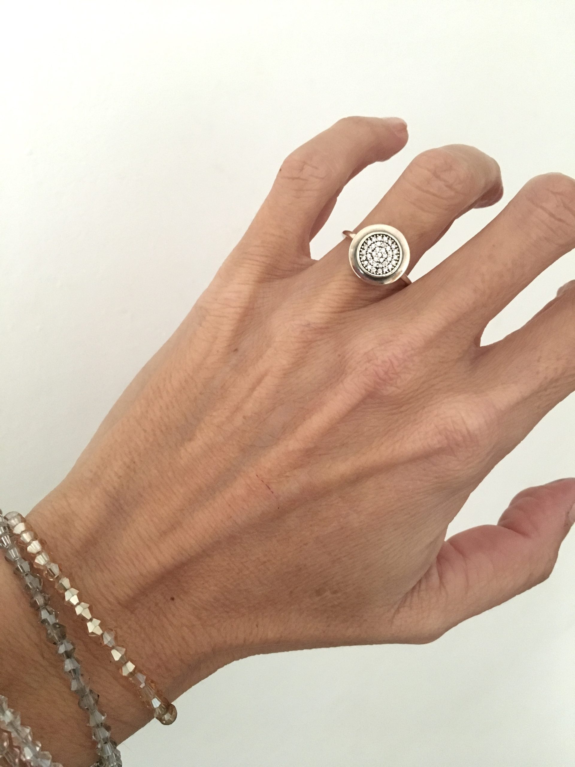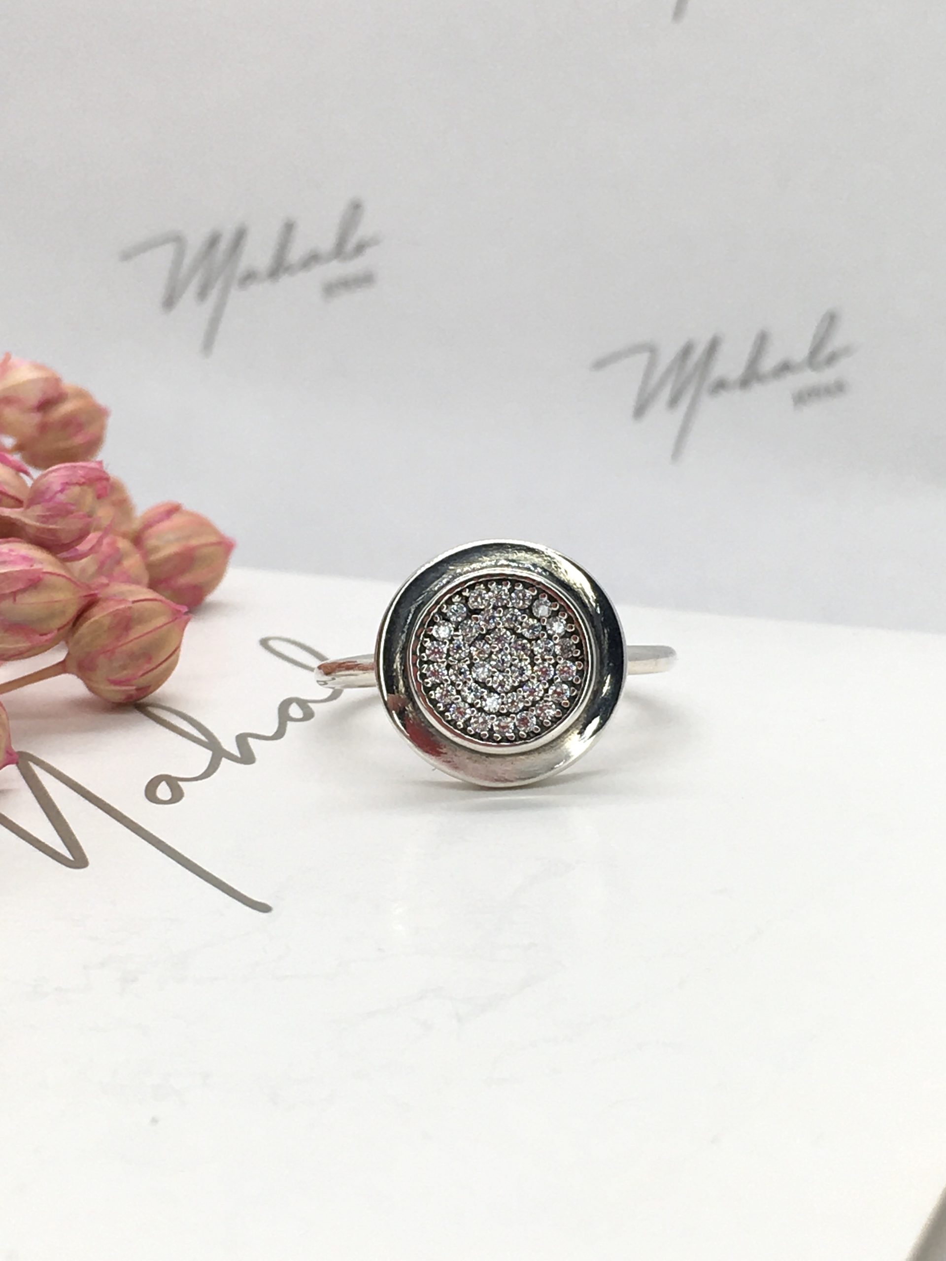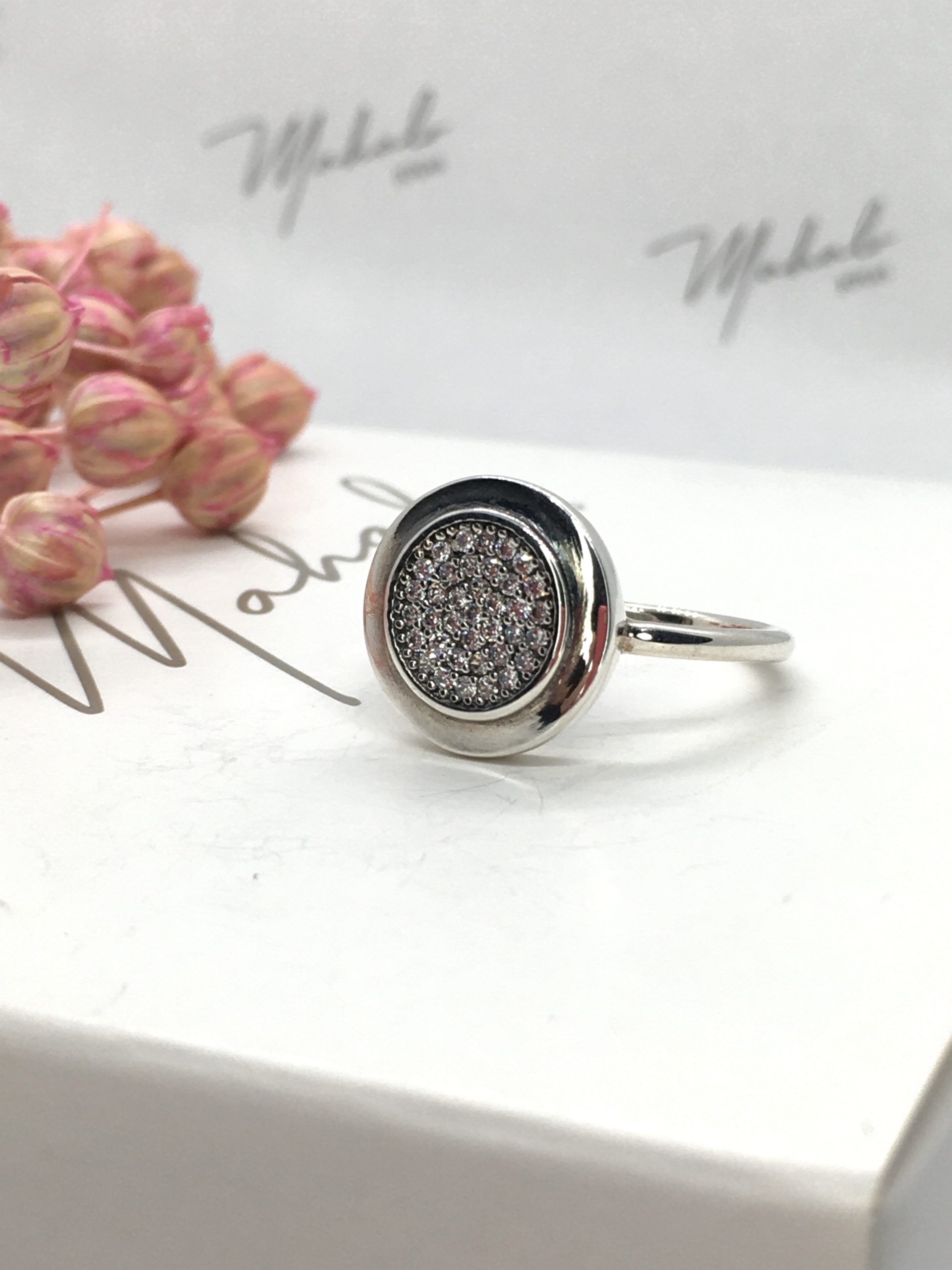 Anillo en Plata 925 con superficie circular con pavé de circonias. Un anillo delicado y sofisticado muy cómodo de usar.