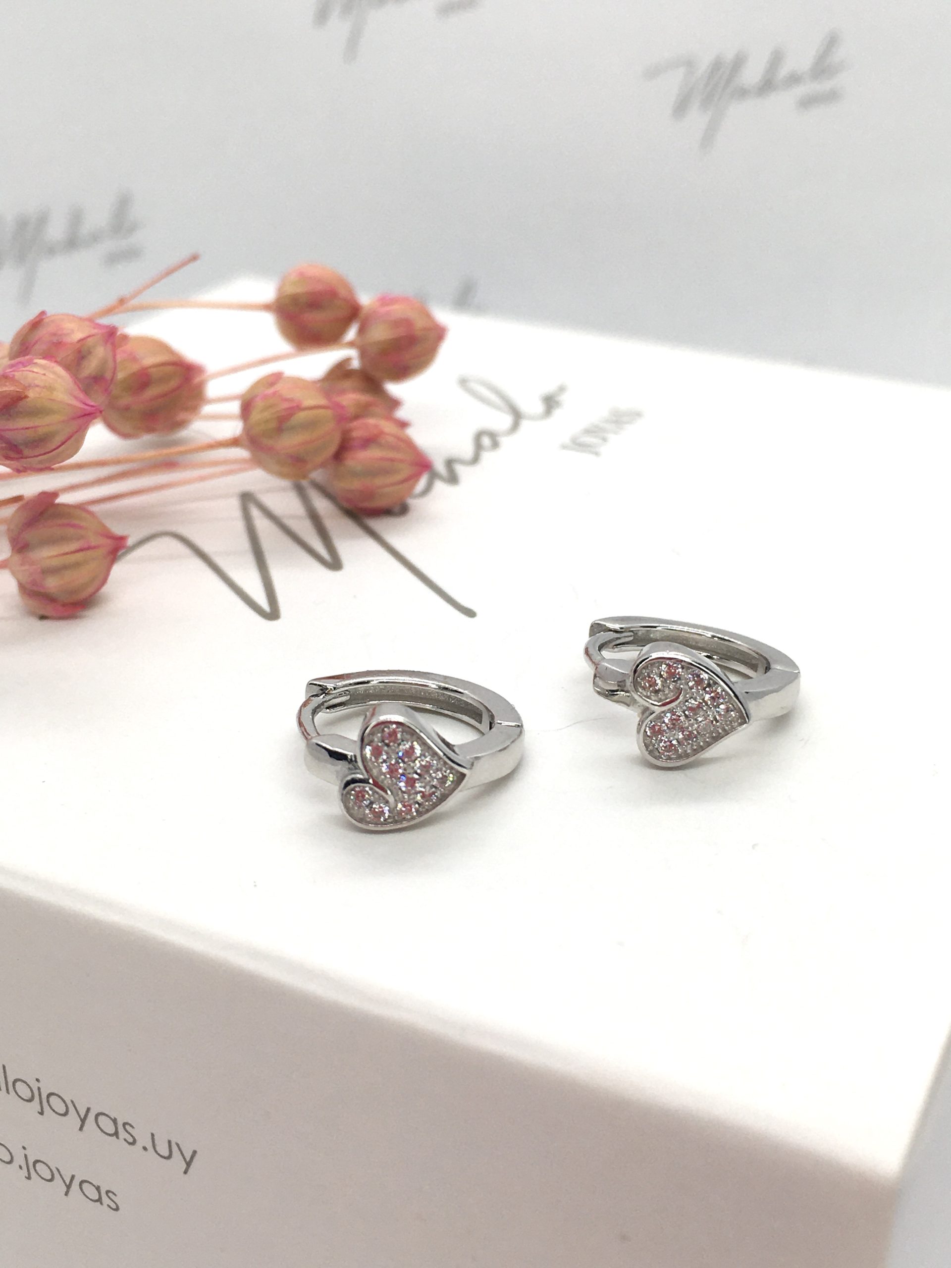 Aritos en Plata 925 Rodinada con corazón con circonias. Sistema de cierre bisagra.