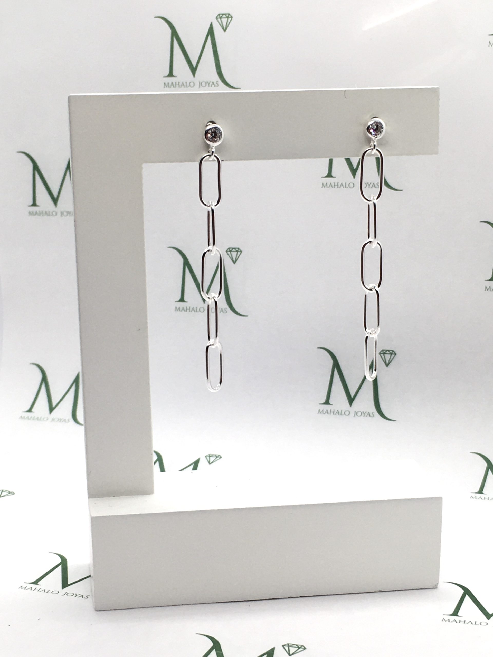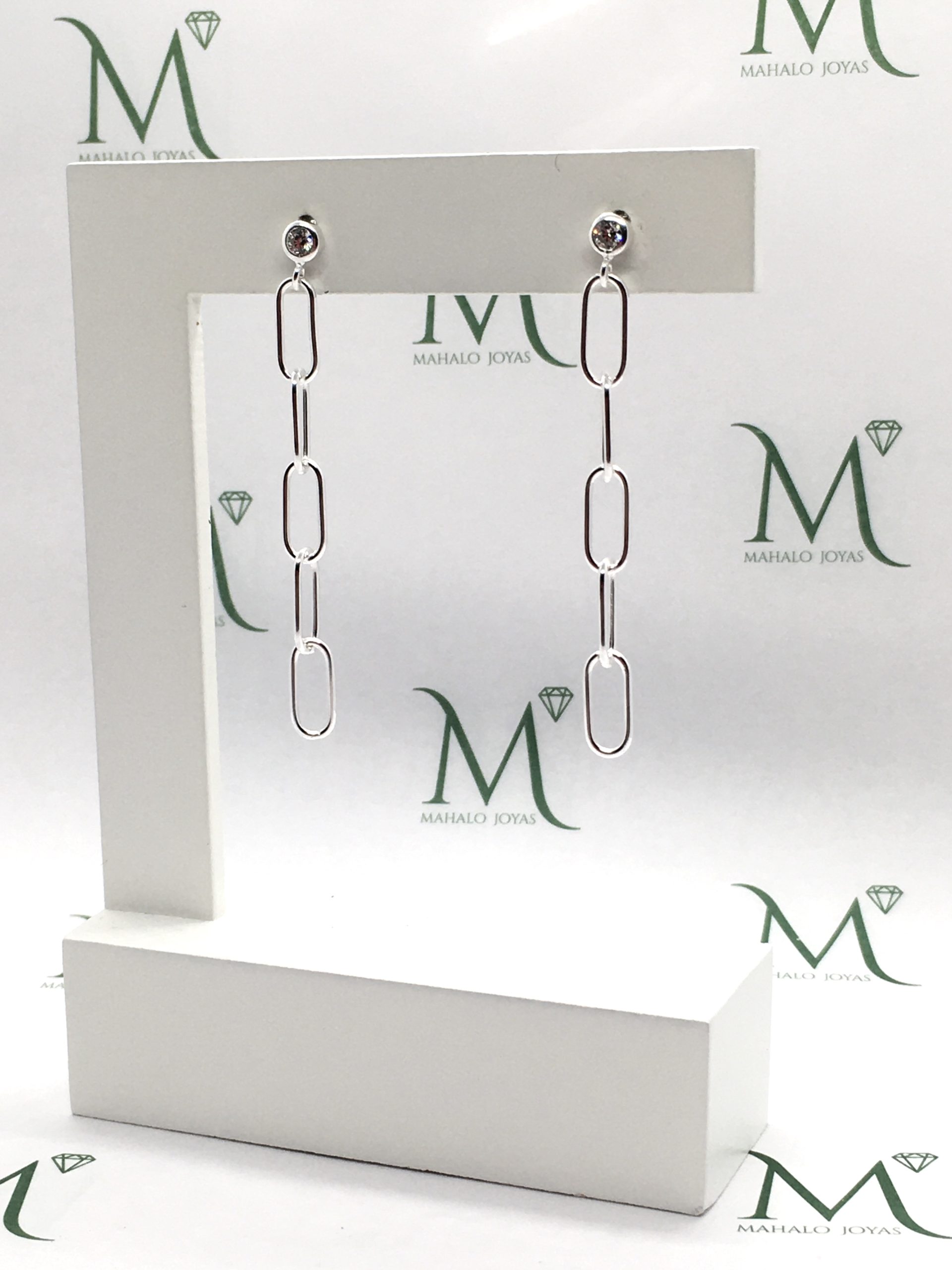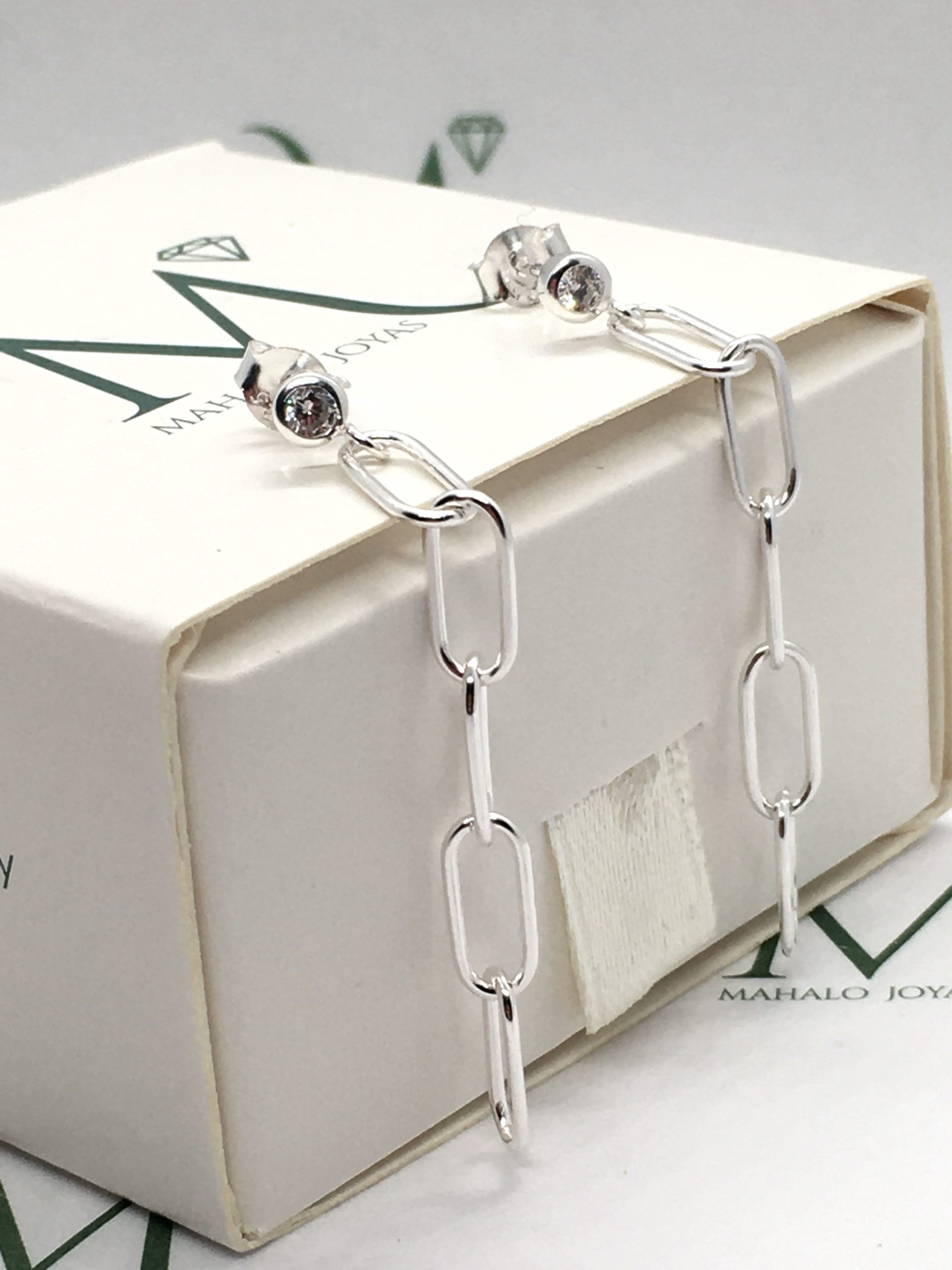 Caravanas largas confeccionadas en Plata 925, con eslabones alargados y circonia.