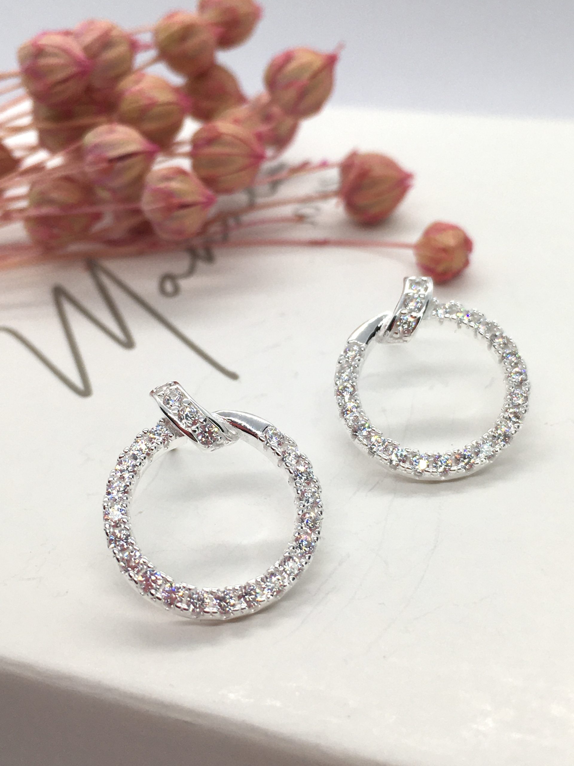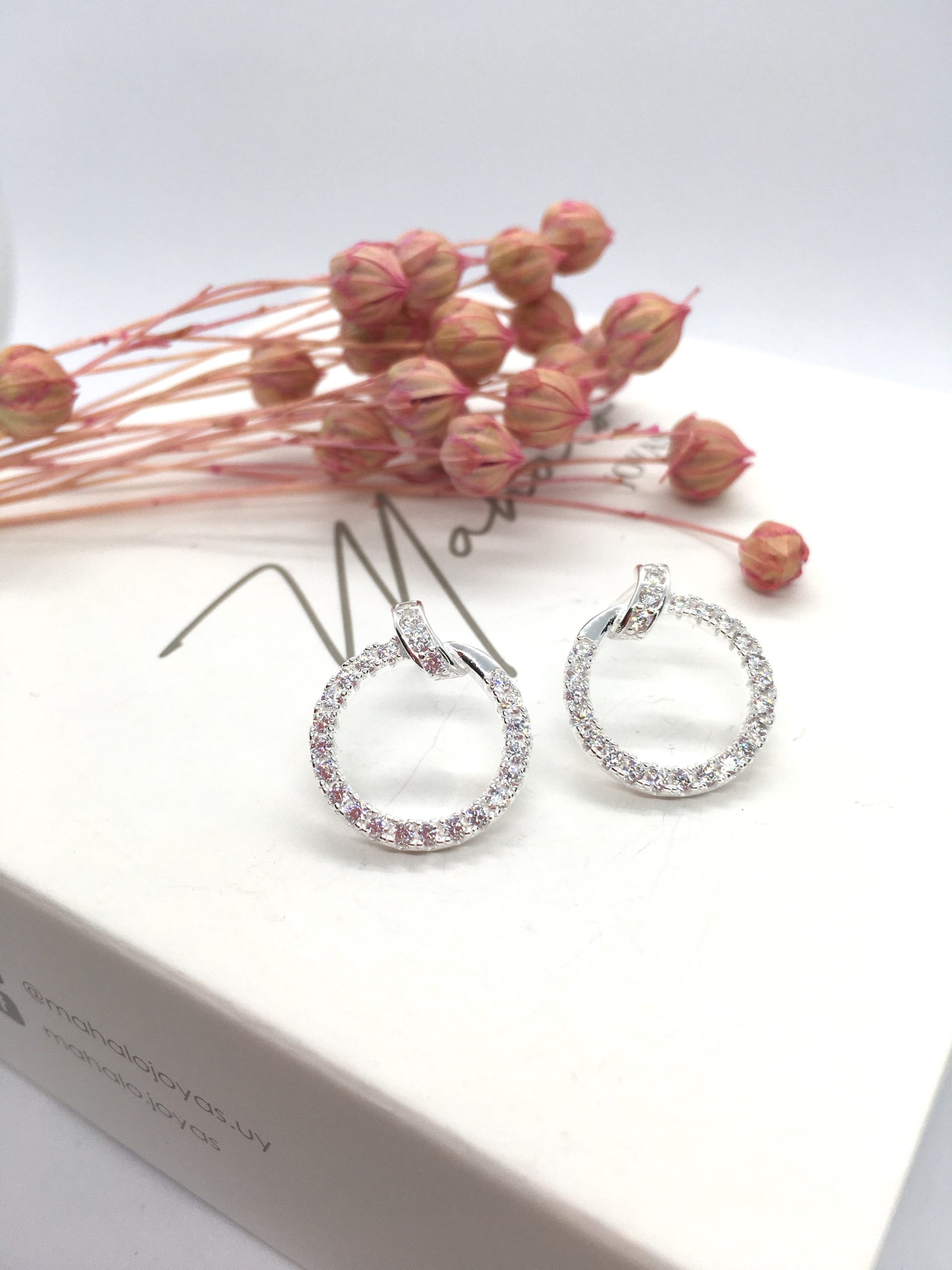 Caravanas en forma de circulo en Plata 925 y circonias. Sistema de cierre a presión.
