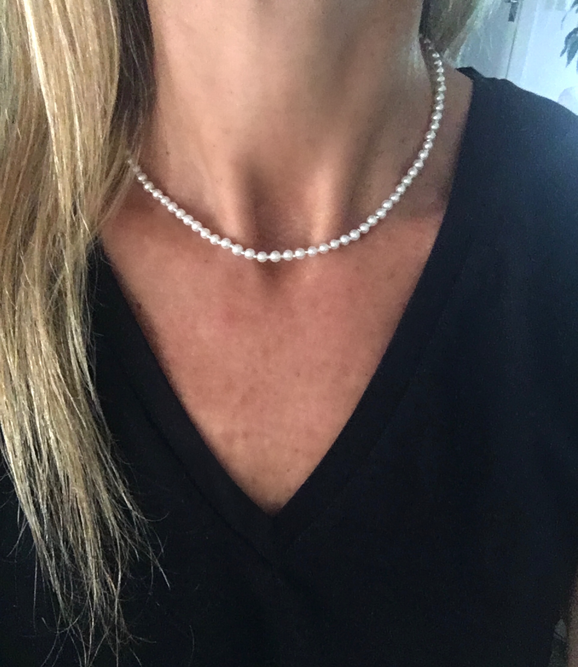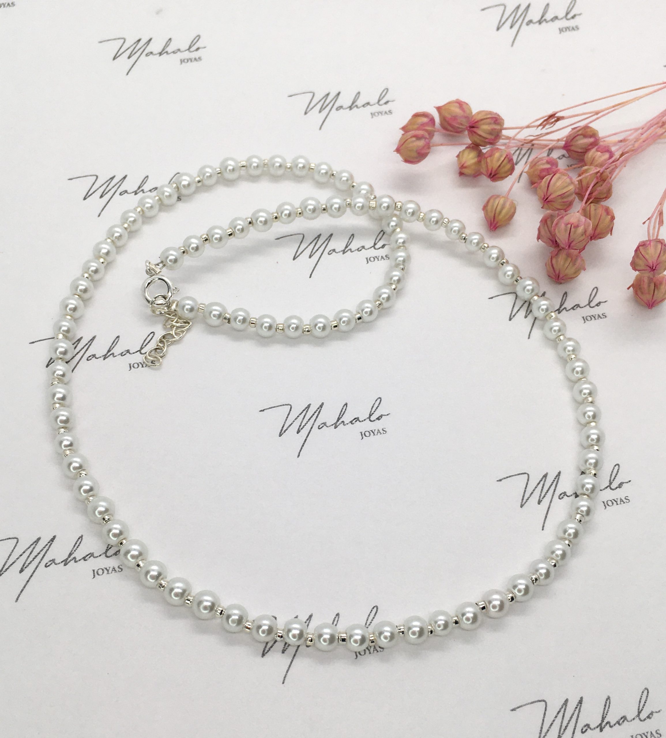 Collar confeccionado con perlas sintéticas de muy buena calidad y terminales en Plata 925.