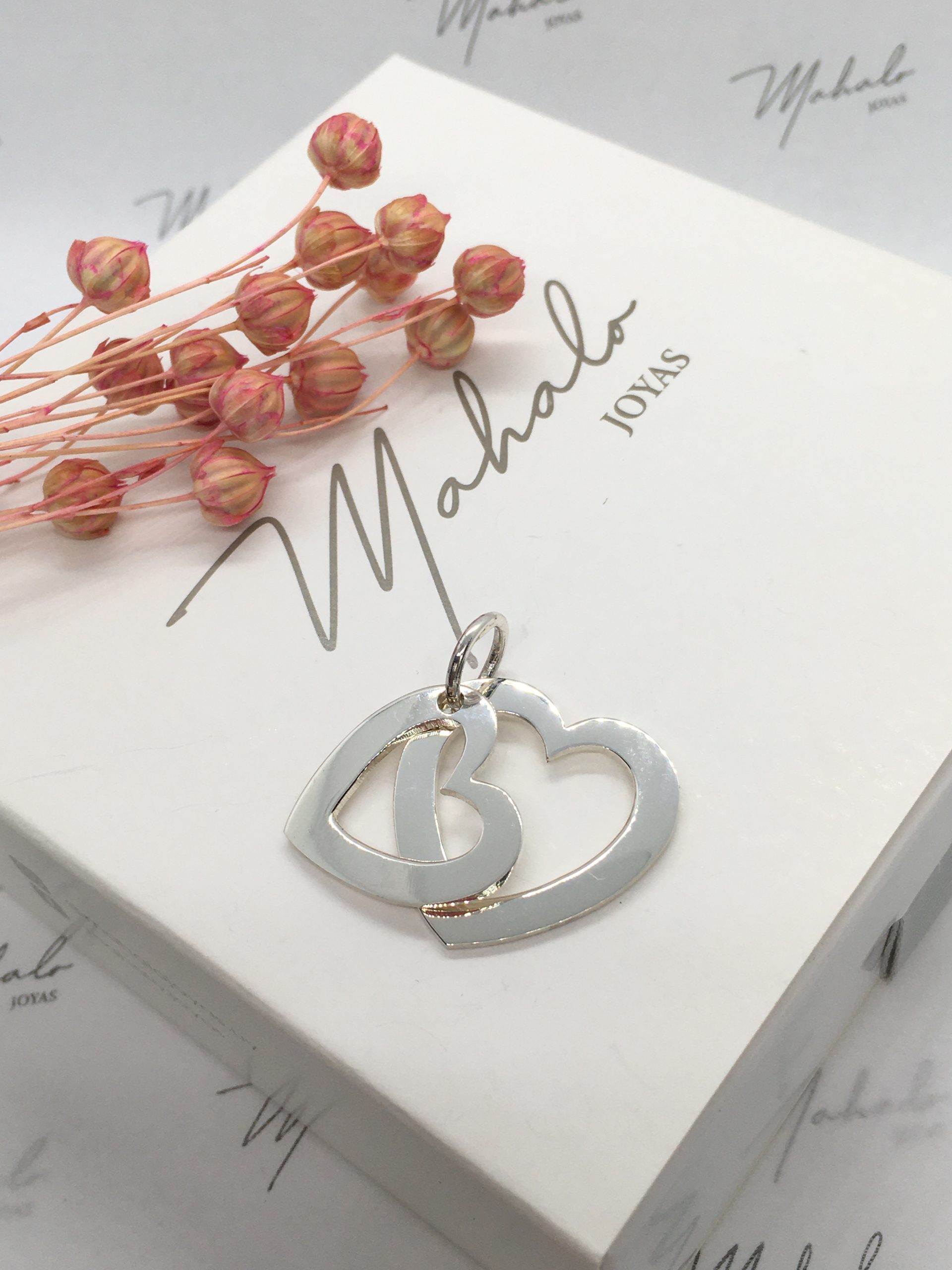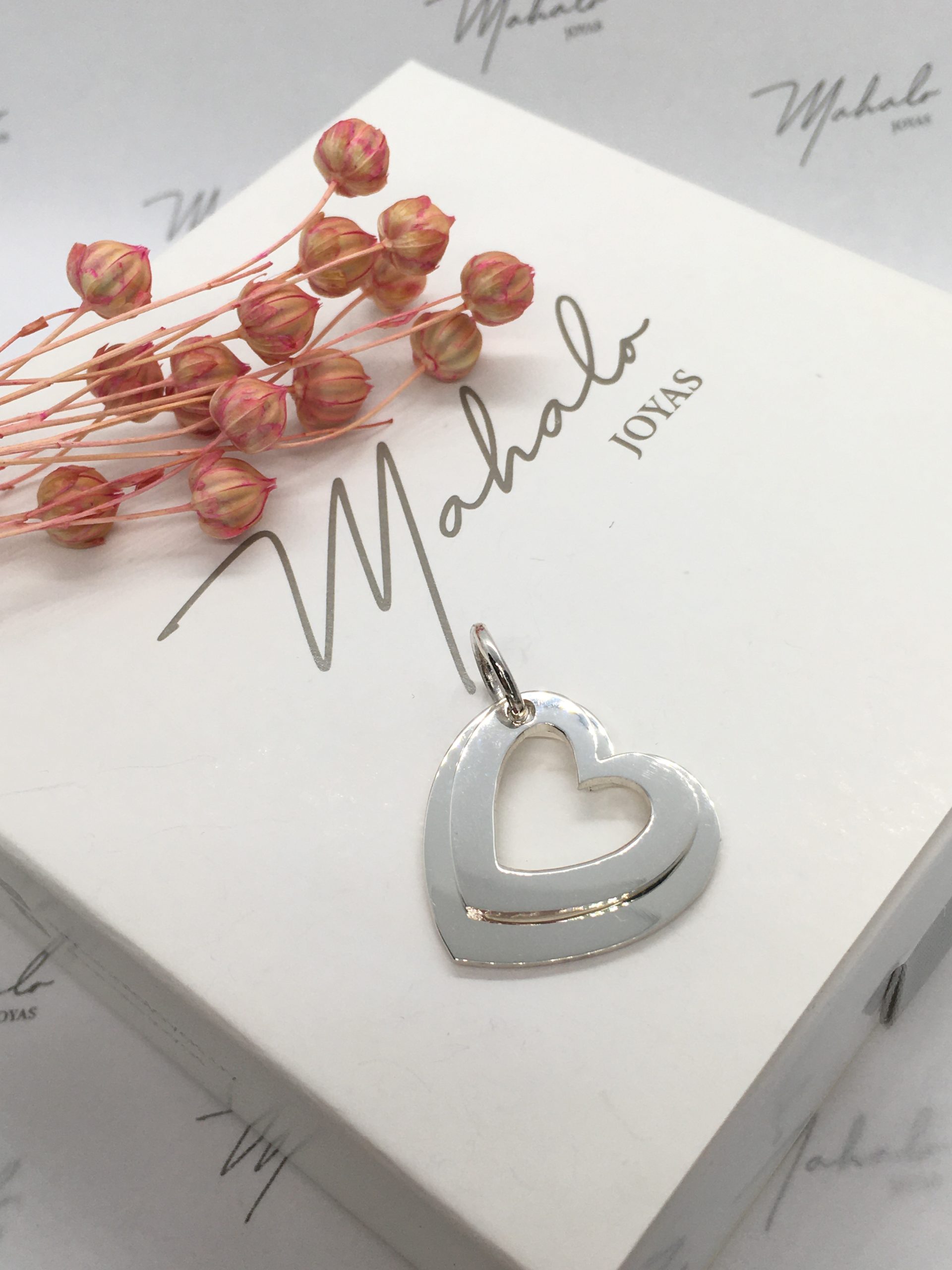 Dije en plata 925, dos corazones calados pueden llevarse lisos o se les puede realizar un grabado, nombre, fecha, palabra.