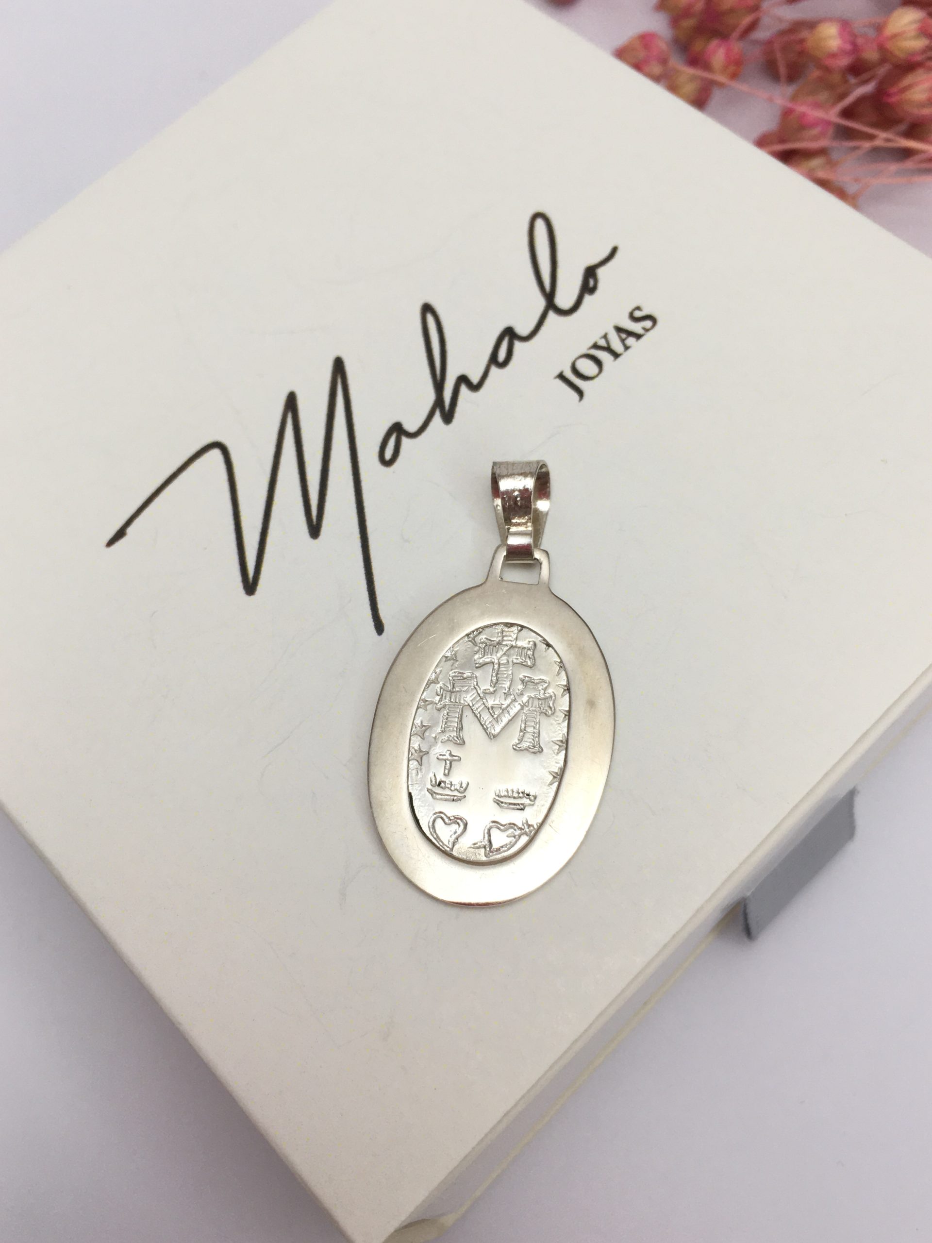 Medalla de la Virgen Milagrosa en Plata 925 con cuatro apliques de oro.