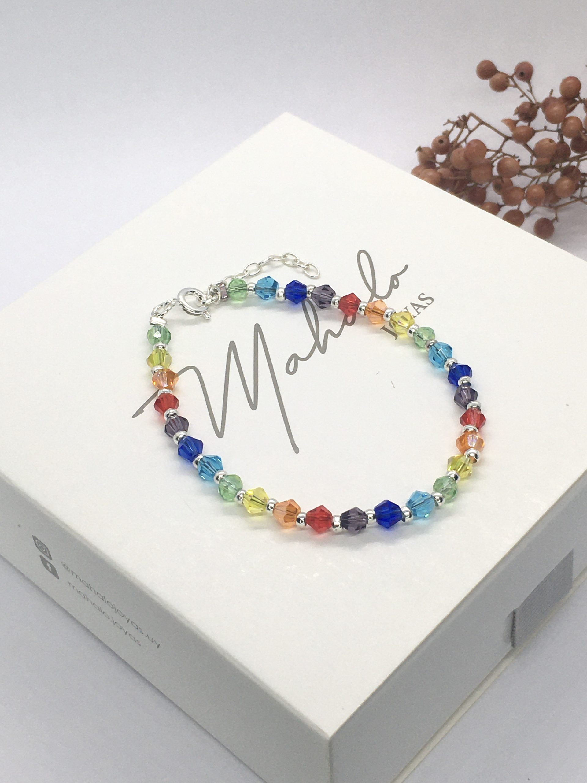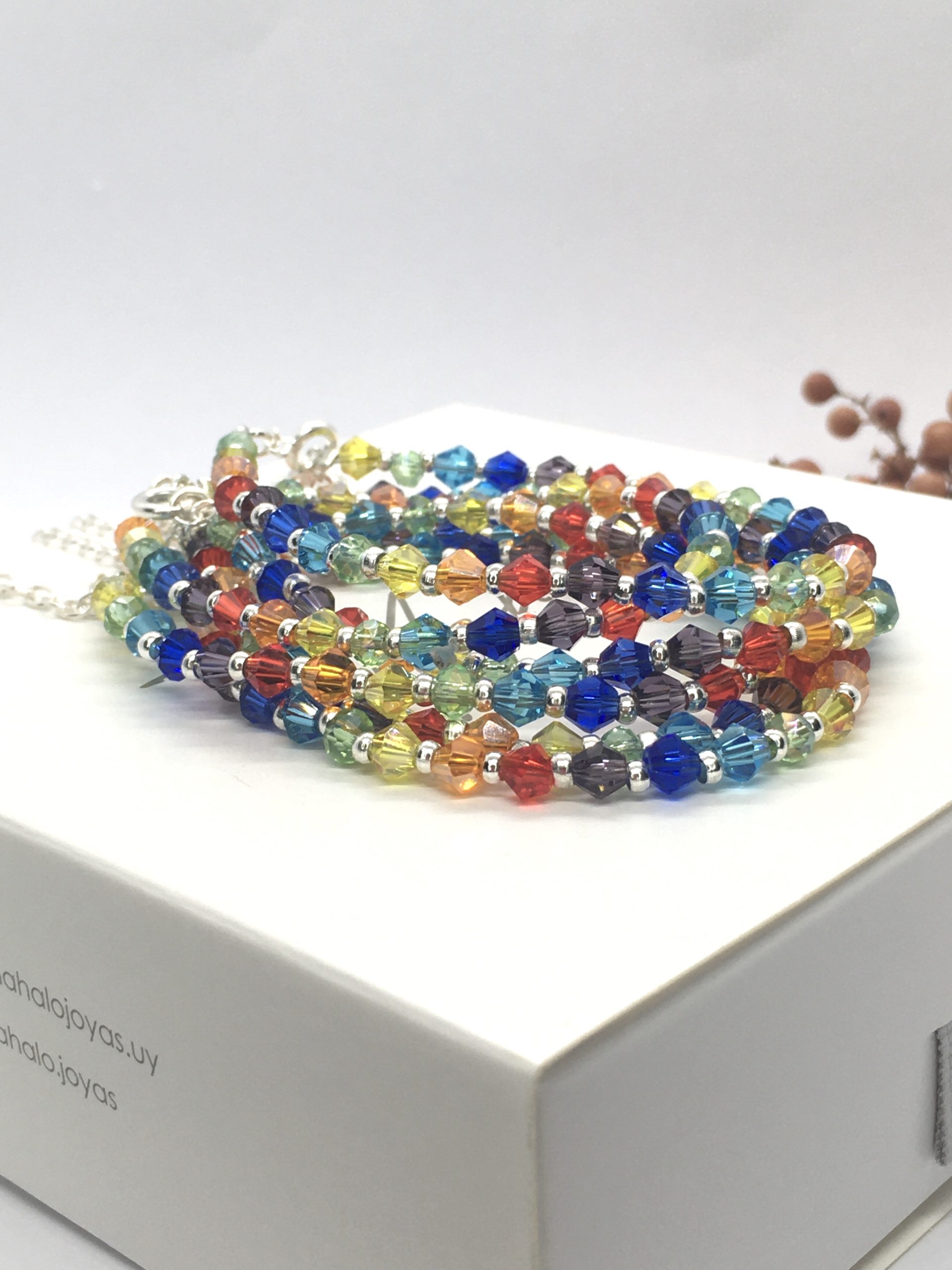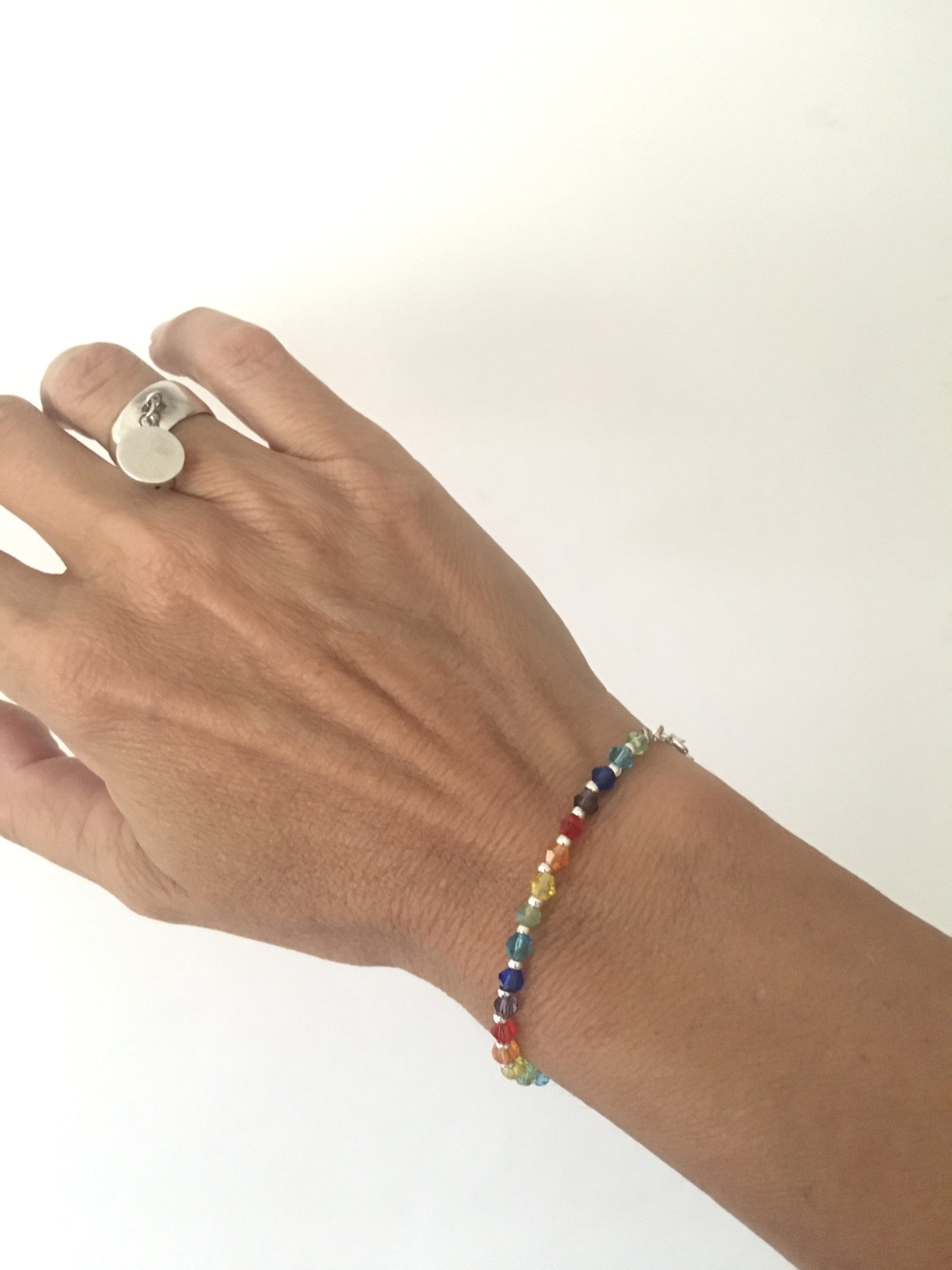Pulsera en cristales facetados multicolores y Plata 925. Para usar sola o acompañando a otras pulseras.